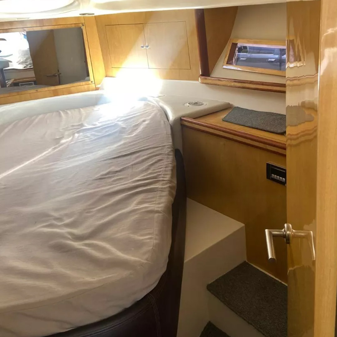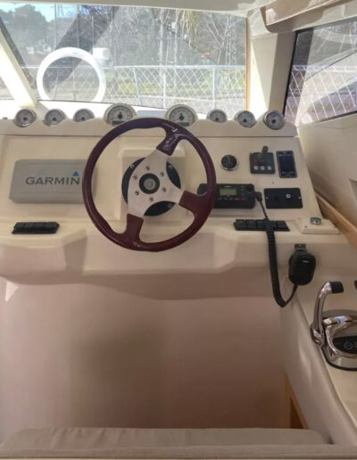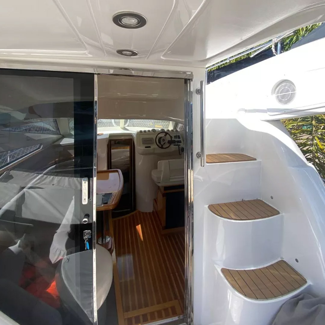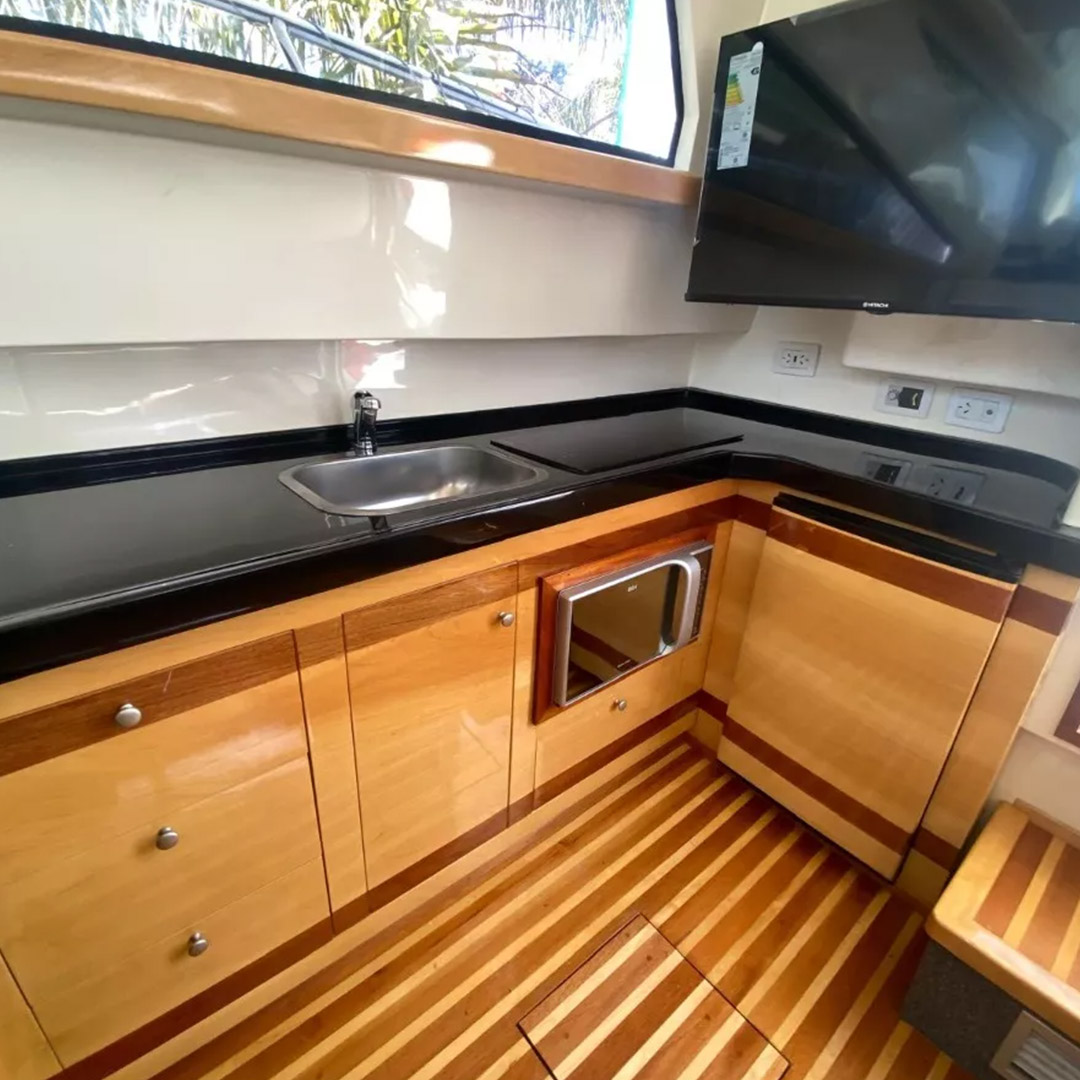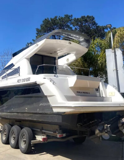 Diseñada para combinar elegancia, potencia y confort, la Aqualum 35 es una embarcación de líneas depuradas y sólida presencia. Su configuración bimotor Mercruiser 6.2L de 300 hp, acoplados a patas Bravo 3, ofrece un rendimiento superior, ideal tanto para navegación deportiva como para salidas recreativas de media distancia. Con capacidad para 9 personas y una eslora de 9.3 metros, brinda un amplio espacio de circulación y confort a bordo.