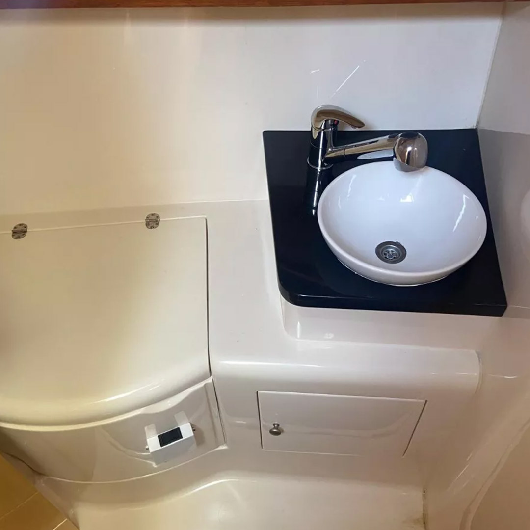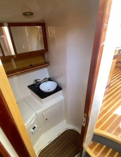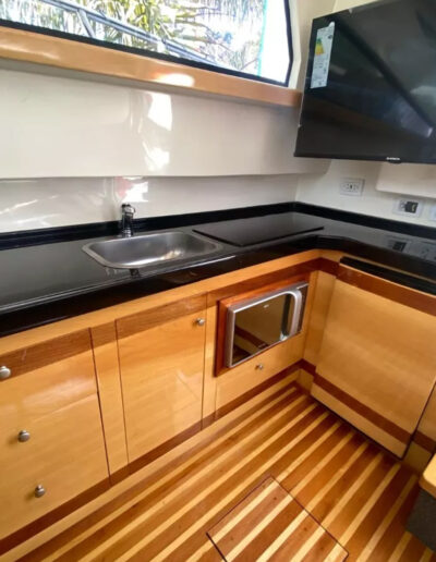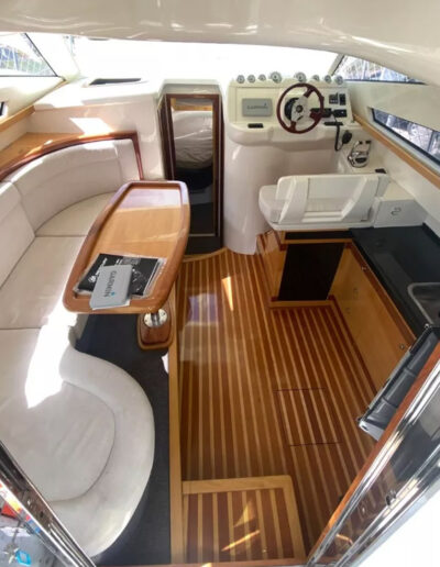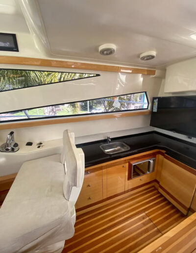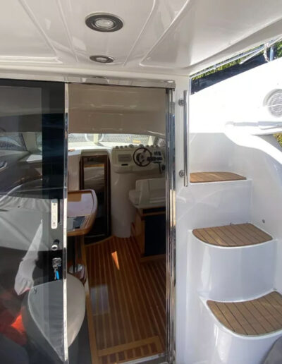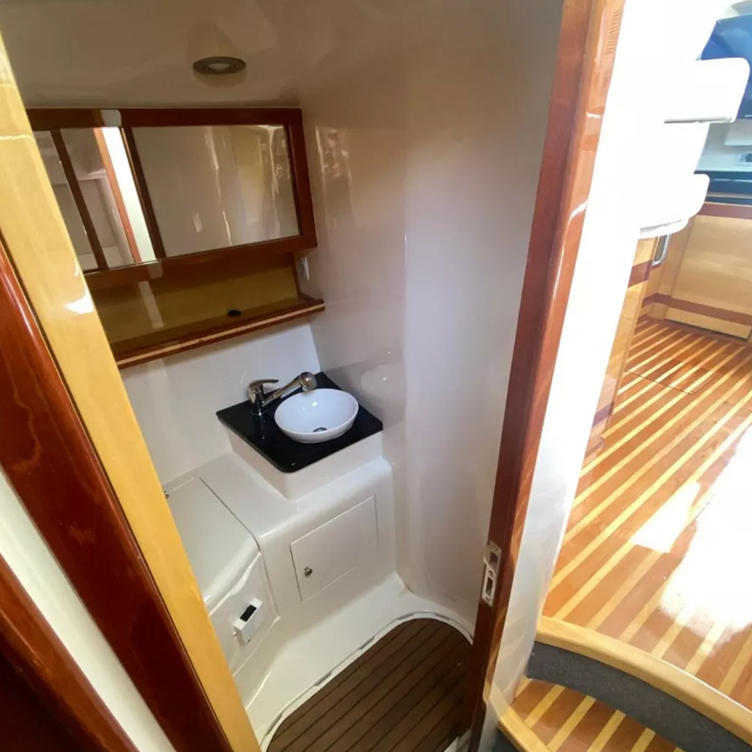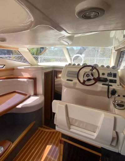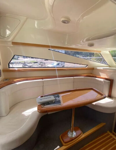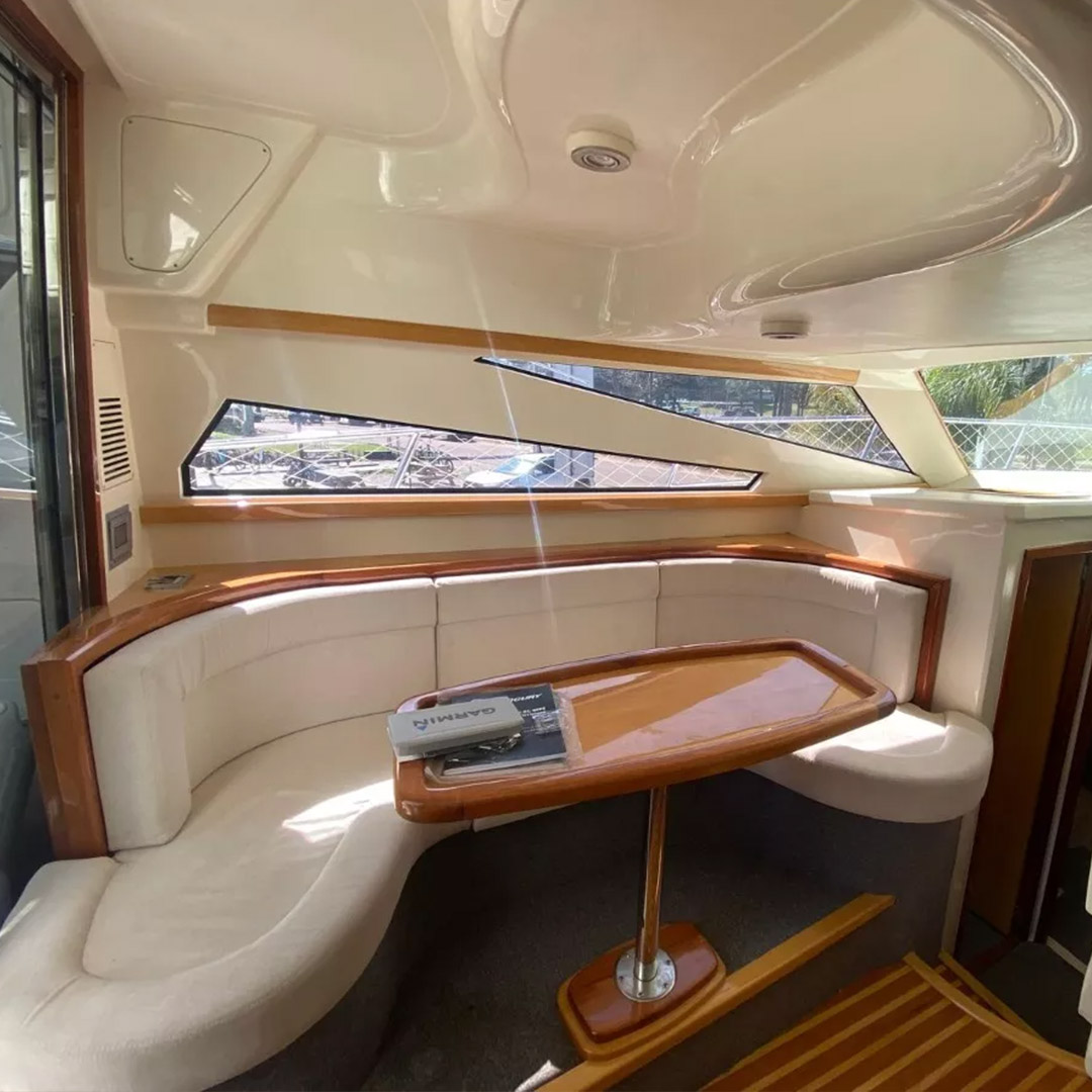 Diseñada para combinar elegancia, potencia y confort, la Aqualum 35 es una embarcación de líneas depuradas y sólida presencia. Su configuración bimotor Mercruiser 6.2L de 300 hp, acoplados a patas Bravo 3, ofrece un rendimiento superior, ideal tanto para navegación deportiva como para salidas recreativas de media distancia. Con capacidad para 9 personas y una eslora de 9.3 metros, brinda un amplio espacio de circulación y confort a bordo.